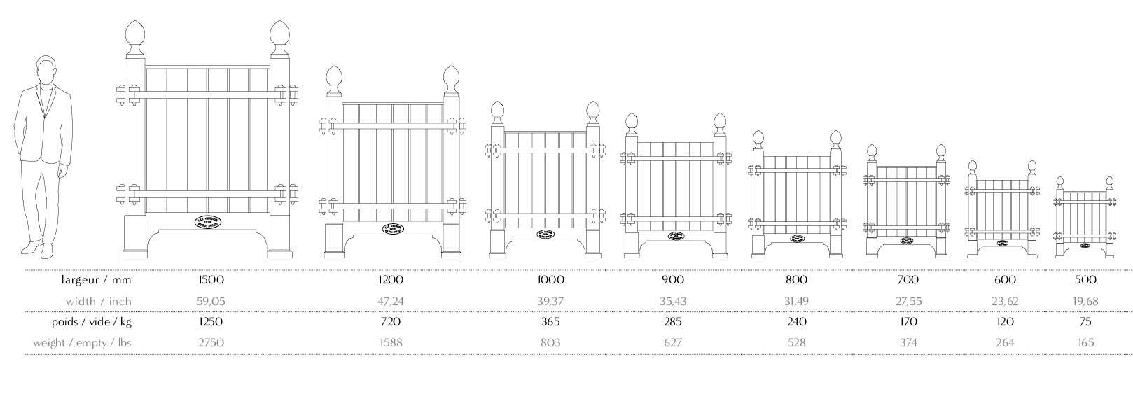 The manufacturing, conditioning and packaging of the cast-iron and oak wood original “Château de Versailles” planters are entirely realised in France. The planter is made of a completely removable cast-iron structure, assembled with highly resistant stainless-steel bolts. The cast-iron is cast in France in the best possible conditions as to ensure optimal technical and sanitary quality. The structure is cataphoresis-treated before receiving a primer and two coats of finishing paint.
